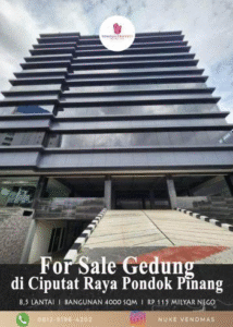 Office Building Name: Gedung di Pondok Pinang Location: Jl. Ciputat Raya, Pondok Pinang, Kebayoran Lama, Jakarta Selatan, DKI Jakarta 12310 Floor/View: 8,5 Lantai dan Basement Size: 4000 m2 Condition: Luas 965 m2 Luas Bangunan 4000 m2 Bangunan 8,5 Lantai + Basement Legalitas SHM dan IMB…